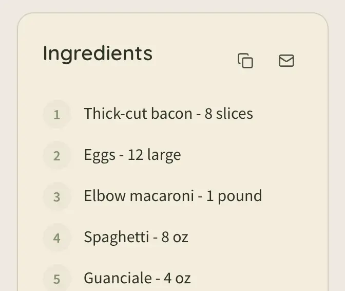 Easily save any recipe by simply pasting in a link — automatic importing does the rest. One click to email yourself the ingredients list for shopping!